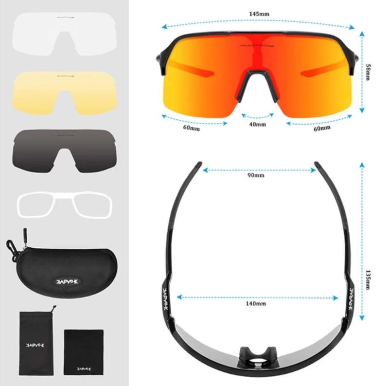 Durable and lightweight frame- designed for comfort and speed- Three-point fit - Interchangeable lenses- Frame suitable for all faces - No-slip ear and nose pieces -Kit includes: Sport case, micro bag, extra alternative fit nose pad and spare replacement lenses